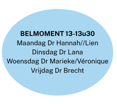 Elke dag is er een specifieke arts beschikbaar voor een belmoment tussen 13:00 en 13u30. Tijdens deze uren kun je telefonisch vragen stellen aan je vaste huisarts, zoals over onderzoeksresultaten.